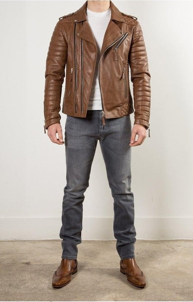 This jacket is amazing! The lambskin leather is super soft and high quality, giving it a luxurious feel. The fit is perfect, and the stitching looks durable. I love the dark tan color—it goes with everything. The lining is comfortable, and the biker style adds a cool edge. Great for riding or just looking stylish. Highly recommend!