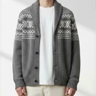 Men's Fair Isle Grandpa Knit Cardigan Button Front Cozy Shawl Collar Size Medium Cozy cold-weather knit with vintage "grandpa" vibes, featuring classic Fair Isle detailing and a warm, relaxed fit. Great for holidays, casual outings, office layering or après-ski style. Soft, comfy, and perfect for gifting. Approximate Measurements Chest Width: 20.0 in. Shoulder Width: 19.0 in. Body Length: 27.0 in. Back Length: 28.0 in. Sleeve Length: 26.75 in. Bottom Hem Width: 18.0 in. Sleeve Opening Width: 4.75 in. Excellent used condition, no stains, no holes grandpa sweater fair isle knit retro cardigan holiday sweater vintage vibes chunky knit men's medium button front winter style