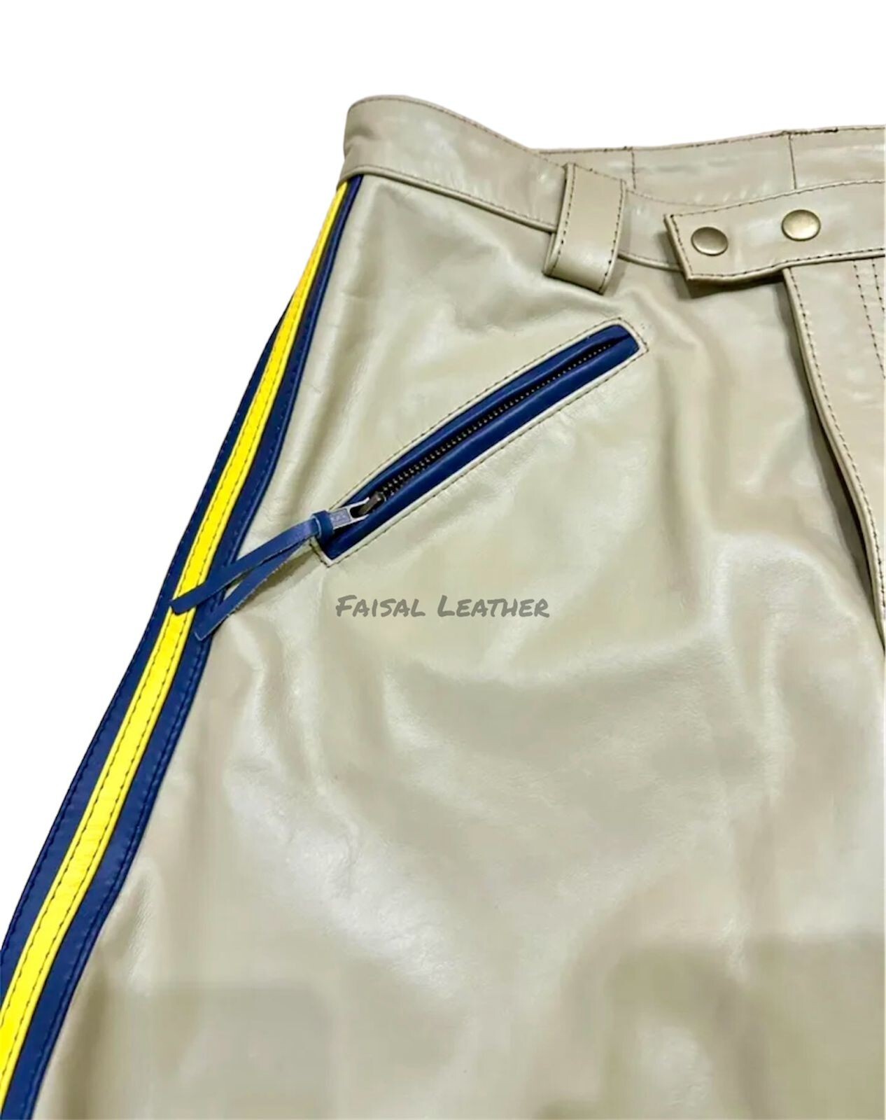 Men's Genuine Cow Leather Police Highway CHP Leather Breeches Sexy Gay BLUFF Made with the cow thick leather Highway leather breeches Blue and yellow strip Breeches style jeans Available in all size Available in all colors We use the best things for our product We made our all products on customer measurements shipping details Our all items are handmade to order , please allow 3 to 4 working days for the item to be delivered at your door step We only use FedEx & UPS (tracked) as our main courier. Return If you are not completely satisfied with the quality or any other reason, then you have the right to return or exchange within 14 days of delivery. PLEASE NOTE that buyer has to pay the shipping charges in case of return and refund. Exchange We offer our customers the best quality product. If you are not completely satisfied with the product we possibly can exchange the product with regard to customer satisfaction. Make sure that we do not send the new item, unless we obtain the old product and also the return shipping costs.