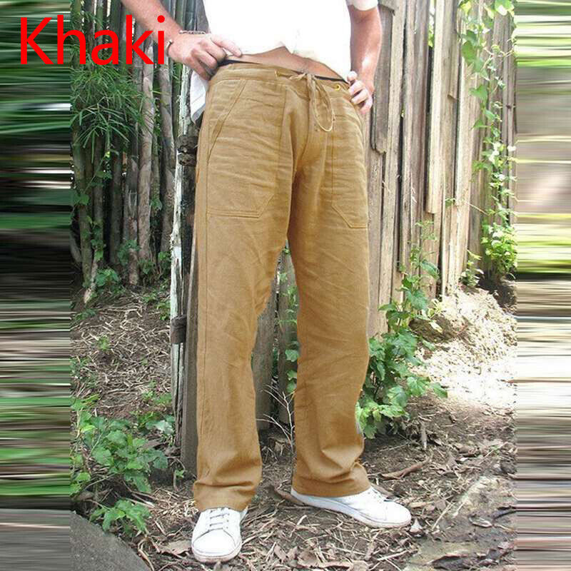 Inseam: 25 in Size Type: Regular Style: Sweatpants Features: Elastic Waist, Pockets Country/Region of Manufacture: China Front Type: Flat Front Fabric Type: Cotton Linen Handmade: Yes Closure: Drawstring Pattern: No Pattern Season: Fall, Spring Type: Trousers Material: Cotton Linen Brand: Unbranded MPN: Does Not Apply Leg Style: Straight Fit: Regular Model: Work Pants Department: Men