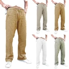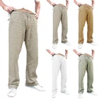 Mens Loose Linen Cotton Straight Pants Elastic Waist Casual Trousers Streetwear