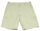 Newer pair of Nike GOLF Brand Ivory Microfiber Cargo Chino Shorts. Tag Size: 32. 95% Polyester 5% Spandex. Waist: 16.25, Inseam: 9.5, Front Rise: 11, Leg Opening: 11. Worn just below the waist. Faint mark on the left front near the cargo pocket. Not obvious. BWOA4