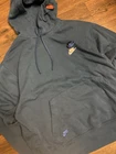 This men's Nike Sportswear pullover hoodie in size XL features a blue color with a colorful logo accent. The hoodie includes a drawstring closure and is made of 80% cotton and 20% polyester. It showcases a unique all-around print design and is designed with a hood and pockets for added functionality. This versatile hoodie is suitable for various activities such as tennis, cycling, basketball, and running, making it a stylish and practical addition to any active man's wardrobe.