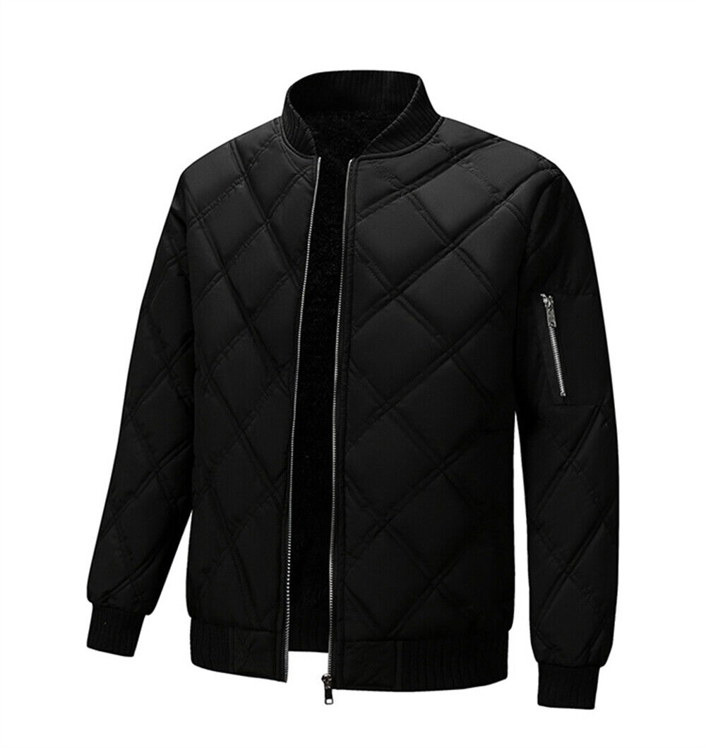 Men's Warm Winter Stand Collar Cotton Fleeced Jacket Thermal Casual Zipper Coat