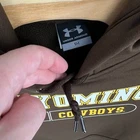 Men's brown Under Armour University of Wyoming Cowboys hoodie sweatshirt pit to pit: 22" length: 24" Fit's like: men's S Item is in good used condition. Look at photos to see the condition. All, if any, flaws have been pictured. See the last photo for measurements along with my suggestion of what it fits like. Please know which measurements fit you prior to purchasing, and don’t just rely on my suggestion. Feel free to ask any questions! ***Item is cross posted on several platforms***
