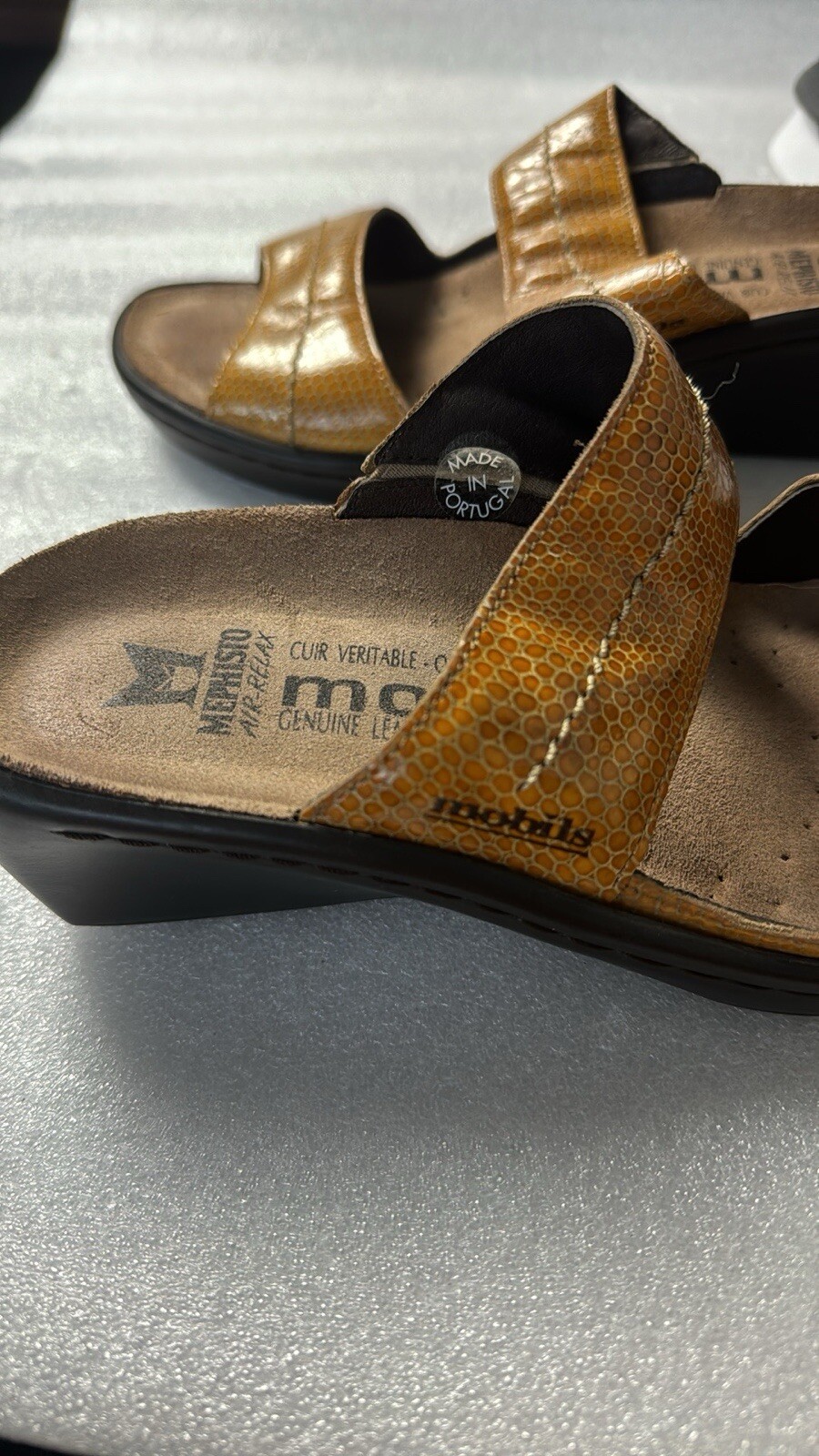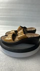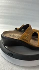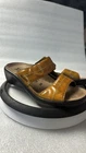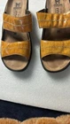 Add a touch of comfort to your daily activities with these Mephisto Mobils Slide sandals. Featuring a colorful animal print pattern and a slip-on closure, these sandals are perfect for women who love walking, school, or dance. The flat wedge heel style provides a comfortable fit, while the strap and logo accents add a touch of elegance. Crafted from high-quality leather, these sandals are durable and perfect for any casual or workwear occasion. The standard shoe width and EU size 36 make them a perfect fit for women who wear US size 5.5. Get ready to embrace the sunny days with these stylish and comfortable Mephisto Mobils Slide sandals. Pre-owned sandals normal wear and tear see pics for details.