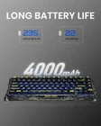 ⌨Stylish and Unique Design: The Mechanical Keyboard features a hollow and skeletal design that breaks away from traditional keyboard aesthetics, making it a standout piece on any desk. Constructed from durable PVC material, the transparent frame and keycaps maximize the cool backlight RGB effects and wear-resistant appearance. ⌨Comfortable and High-Quality Typing Experience: Equipped with a mainstream gasket structure and x BSUN custom switches, the K1 Lite provides soft key feedback and a comfortable typing experience, perfect for both gaming and typing. The five-layer internal design ensures high-quality keypress sound, producing crisp and concentrated audio. ⌨Tri-mode Connectivity: Keyboard Supports 2.4GHz wireless connection (1K Hz polling rate), Bluetooth 5.0, and wired (8K Hz polling rate)connections, offering seamless compatibility with Windows XP up and MacOS. It can be connected to up to three devices at the same time, and switch between them easily by FN and key combination keys. No limits about your keyboard connection to meet the needs of work, gaming, and study. ⌨RGB Lighting Effects: The Gaming Keyboard features 13 Different RGB lighting modes to choose from, providing a customizable and immersive experience. Advanced customization with Control Center software complete control over your RGB lighting system effects, including brightness, speed, and color. The app is compatible with all active versions of Windows, including XP, 7, 8, 8.1, 10, and 11. ⌨Reliable Battery Life: Featuring a lightweight 4000mAh lithium-ion battery, the Wireless Keyboard stores enough power that you might even forget it needs charging. With up to 235 hours between charges*, it can keep up with the longest marathon gaming sessions, anywhere they may take you. When it finally does need a charge, connect the included USB-C cable to replenish your power without interrupting your game.
