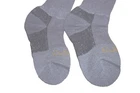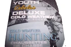 189L- This is for one pair of boys youth deluxe cold weather hunting socks size medium 9 - 11.5, the color is gray it maybe a couple shades off due to flash but close, they are brand new says slightly irregular cosmetic defects only, figure it is the spelling on the toe section isn't perfect, the following info is below: A warm and comfortable sock that works great inside any tall outdoor boots, Cabela's® Deluxe Cold-Weather™ Wool Boot Socks for boys youth help keep feet warm and dry in the nastiest conditions. A great choice when facing an all-day wait on a cold stand or long stalk through wet, soggy terrain, these socks are a smart addition for any cold-weather boots. Made of a 55% Merino wool/24% acrylic/12% Thermolite™/8% stretch nylon/1% Spandex™ blend, these boots socks offer the natural moisture-wicking, temperature regulation, and odor resistance of wool during harsh weather. Extra-heavyweight construction includes a thick, dense yarn-loop interior that keeps keep feet cushioned on long treks over rough hunting terrain. Tall 10" height and superior moisture-wicking ability make these boots great for use in tall hunting boots and other outdoor boots. 55% Merino wool/24% acrylic/12% Thermolite/8% stretch nylon/1% Spandex blend Soft Merino wool Extra-heavyweight construction Thick, dense yarn-loop interior 16" height .