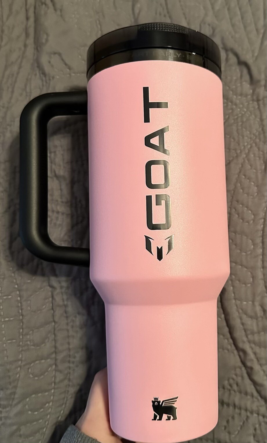 Absolutely love this tumbler! The 40oz size is perfect for all-day hydration, and the Messi edition makes it extra special. The flip straw is super convenient, and the GOAT pink color is vibrant and eye-catching. Keeps drinks cold for hours, no condensation, and the handle makes it easy to carry. Free shipping is a nice bonus—such a great deal! A must-have for Messi fans and Stanley lovers. Highly recommend!