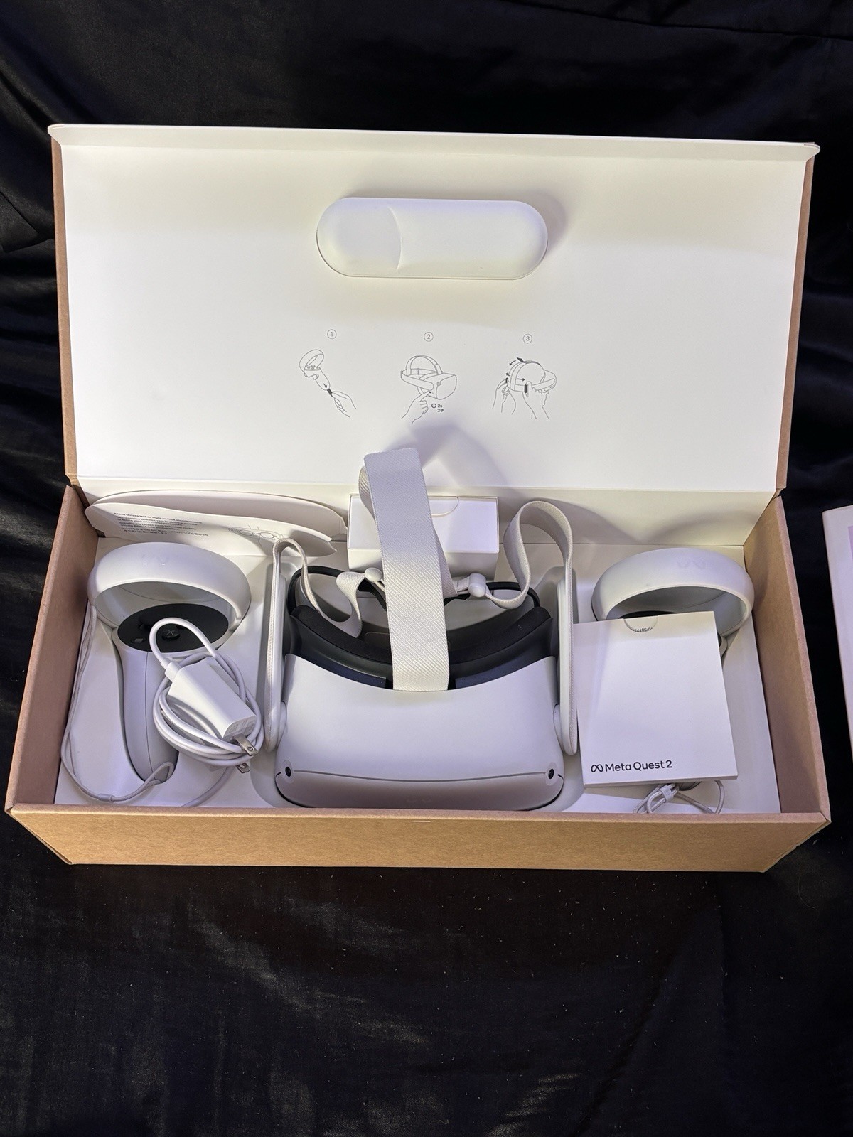 This Quest 2 comes with it's original controllers and charging brick. The controllers do not have stick drift and work perfectly, and have not been hit against anything. The headset itself similarly has no issues whatsoever, and has been factory reset as shown in the photos. It does not come with a headstrap as the original fabric one fell apart after only light use. Best offers accepted.