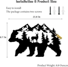 【CABIN DECOR】 This amazing bear decoration is doing work on the wall of your house. It's an incredible gift and great addition to your room. Make your cabin house looks wonderful! 【UNIQUE DESIGN】 Our metal bear wall art is designed with bear, moose and pine needles tree pattern. The exquisite laser cutting technology of this metal wall decor makes the wildlife scene looks lifelike. 【SIZE & MATERIAL】The dimensions of this bear wall decoration is 14 x 8.5 Inch. It is made of metal, which is sturdy and reliable to use. 【PERFECT GIFT】It is a great gift for relatives and friends, especially bear lovers. When they receive this funny black bear decor, they will be immersed in the great atmosphere. 【EASY TO INSTALL】This metal bear decor is designed with 2 holes for easy hanging. There are 2 expansion screws inside the package so you can easily mount it anywhere you want. D E S C R I P T I O N : This metal bear wall art is designed with bear, moose and pine needles tree pattern. The exquisite laser cutting technology of this metal wall decor makes the wildlife scene looks lifelike. S P E C I F I C A T I O N S : - Name: Metal bear wall decor - Main color: Black - Product size: 14 x 8.5 Inch (approx. ) - Product material: Metal - Application: Cabin room, living room, bedroom. P A C K A G E I N C L U D E D : 1 * Metal bear wall decor 2 * Expansion screws W A R M P R O M P T : 1. Installation requires two screws with a diameter of 0.5 cm. (Included) 2. If you have any questions please contact us. We will gladly help you.