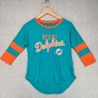 Welcome to Aspen Crossing! This item is Miami Dolphins NFL Team Apparel Womens Small 3/4 Crew Logo Tshirt 25.5" LENGTH: Measured from the top of the shoulder to the hem. 19" CHEST WIDTH: Underarm to underarm, measured flat from left to right. 3/4 Sleeve It is always best to compare the measurements above with a top that fits you comfortably. CONDITION - Good pre-owned condition. All items are cleaned per EBAY standards. Not spot treated. See the photo gallery to view this items measurements and condition. SHIPPED - USPS First Class Mail unless item weight requires priority mail. RETURNS accepted, must be returned within 30 days in original condition to receive a full refund. SHIPPING AND HANDLING We ship all packages within five business days Monday through Friday except Holidays. Consolidated shipping is available for multiple purchases. Thank you for helping our planet and buying previously owned and loved items. I am grateful for your business. Enjoy! Check out our eBay store and follow us. There are new listings daily. CUSTOM SKU: 28-2520 Disclaimer: While we make every effort to capture the most accurate depiction of every item when photographing, colors may vary from screen display to in person therefore we cannot guarantee "exact shade" on any item. Message us if you have questions.