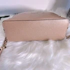 A chic dome silhouette delivers a versatile look with this leather crossbody from Michael Kors. 9" W x 7" H x 3.5" D Material: Saffiano Leather; Trim: Saffiano Leather; Lining:100% Polyester Top Zip Closure Interior:1 Back Zip Pocket, 1 Front Slip Pocket Exterior:1 Back Slip Pocket Gold-tone hardware 100% Cow Leather Wipe clean Imported Listing and template services provided by inkFrog