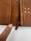 This Michael Kors wallet is the perfect accessory for any fashionable woman. Crafted from high-quality leather in a beautiful tan-brown color, this wallet features studded accents that add a touch of glamour to any outfit. The wallet is designed with multiple compartments and card slots, making it easy to organize your essentials. Whether you're running errands or heading out for a night on the town, this wallet is a stylish and functional choice. It's perfect for women who want to keep their belongings organized and secure. Add this Michael Kors wallet to your collection today! This wallet is beautiful but is preloved and has wear, some tiny spots and a few loose threads, so please view all photos before bidding.