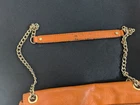This Michael Kors Orange Pebbled Leather Crossbody/Shoulder Bag is perfect for adding a bold pop of color to your outfit while maintaining practicality. Though this bag has some signs of wear, it still has plenty of life left and is ideal for someone looking for a stylish accessory at a great price! Condition: This bag is in fair pre-loved condition. Please note:There are visible scuff marks and some black markings on the orange straps.The exterior has some minor wear and matting on the edges.The hardware shows light wear but is fully functional. The interior is clean with no major stains or odors. Measurements:Height: 6.5 inchesLength: 9.5 inchesDepth: 2 inchesStrap Drop: 23 inches (Adjustable)