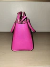 This Micheal Kors tote is a stylish addition to any wardrobe. The exterior is made of high-quality pink leather, perfect for making a statement. The bag is spacious and features a large compartment, making it ideal for everyday use. The strap is comfortable and the hardware is sleek, adding to the overall aesthetic. This bag is a great choice for any woman looking for a fashionable and functional accessory.