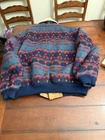 This Aztec bomber jacket is a total vibe! The bold print and sherpa lining make it stylish and cozy. The leather and acrylic fabric feels durable, and the XL fits perfectly. Light wear adds character—such a unique find! Great for making a statement while staying warm. Love it!