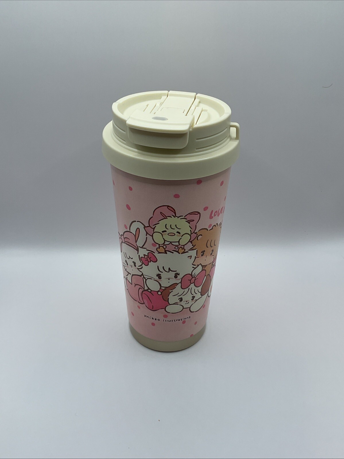This travel tumbler is perfect for fans of the cartoon character Mikko. It features an illustrated design of Mikko on a pink background and comes with a flip lid and wrist strap for easy carrying. The tumbler is made of stainless steel and is insulated to keep hot or cold beverages at the desired temperature. It's a great addition to your daily routine, whether you're commuting to work or heading out on a road trip. The tumbler is part of the Home & Garden, Kitchen, Dining & Bar, and Kitchen Storage & Organization categories, and is also listed under Vacuum Flasks & Mugs.