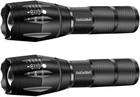 LED Tactical Flashlight for Camping Hiking SUPER BRIGHT LED FLASHLIGHT: Powerful 3000 Lumen LED generates a brilliant large area floodlight or a perfectly focused spotlight over a beam distance of 656ft/200m ZOOMABLE AND 5 LIGHT MODES: Adjustable focus with 5 lighting modes: High/Medium/Low/Strobe/SOS, which allows you can adjust the focus from narrow beam to the wide range PORTABLE AND WIDELY USE: The tactical flashlight is compact and lightweight enough for camping, hiking, fishing, hunting, running, dog walking, maintenance repairs, hurricane, power outage, and any outdoor activities POWER SOURCE: 3pcs AAA Batteries (Batteries Not Included)