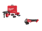 Features Rotary Hammer Kit POWERSTATE BRUSHLESS MOTOR REDLINK PLUS Intelligence: Integrates full-circle communication between tool, battery and charger to protect from overloading, overheating, and over-discharging The M18 REDLITHIUM HIGH OUTPUT XC6.0 Battery Pack provides 50 percent more power and runs 50 percent cooler vs M18 REDLITHIUM XC battery packs AVS Anti-Vibration Systems 2 ft-lbs Impact Energy 3 Mode: Rotary Hammer, Hammer Only, Rotary Only 1,330 RPM 4,800 BPM Part of the M18 System featuring over 200 tools 4-1/2" - 5" Paddle Grinder POWERSTATE Brushless Motor: Purposely built for the M18 FUEL 4-1/2" / 5" Variable Speed Braking Angle Grinder delivers 8,500 RPM to provide the power to complete the toughest grinding and cutting applications. REDLINK PLUS Intelligence: Most advanced system of electronics in the industry, enabling communication between batteries and tools, allowing for unmatched levels of performance, protection, and compatibility. REDLITHIUM HIGH OUTPUT™ Battery Pack (Not Included): Provides 50% more power and runs 50% cooler versus standard REDLITHIUM™ Battery. Superior pack construction, electronics and performance deliver more work per charge and more work over pack lifespan than any battery on the market. Variable speed provides 5 speed setting between 3,500 RPM and 8,500 RPM for greater control. RAPIDSTOP Brake stops most wheels in less than 2 seconds. Paddle Switch Design for Increased Comfort and Ease-Of-Use when Operating in Various Positions Tool-Free Guard Adjustment for faster guard installations and adjustments Tool-Free Accessory Changes with Integrated FIXTEC Nut Technology Compatible with all M18 batteries What's in The Box M18 FUEL 1" Rotary Hammer (2910-20) (2) M18 REDLITHIUM HIGH OUTPUT 6.0 Batteries Rapid Charger M18 FUEL 4-1/2" / 5" Variable Speed Braking Grinder, Paddle Switch No-Lock(2888-20) Side Handle T27 Guard T1 Clip-On Guard Owner's Manual Warranty 5-Year Limited Factory Warranty 30 Day Satisfaction Guaranteed Specifications SKU 2912-22GR Brand Milwaukee Volts 18V Power Cordless 2912-21 No Load Speed RPM 1330 No Load Speed BPM 4800 Impact Energy 2 ft-lb Length 11.5 in Width 4.2 in Height 9 in Weight 9.1 lbs 2888-20 Switch Type Sliding Switch Wheel Diameter 4-1/2" / 5" Length 13.18 in Height 4.36 in Width 2.75 in Weight 3.16 lb why buy from us? secure & hassle-free shopping All items are covered by manufacturer warranty. fast shipping Most orders delivered in 1-3 business days. customer service Call us toll free: 1-800-629-3325 satisfaction guaranteed All our sales are backed by a 30-day satisfaction guarantee.