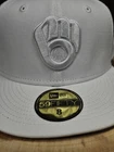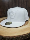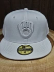 Elevate your game day ensemble with the Milwaukee Brewers New Era 59Fifty Fitted Hat. A classic white colorway ensures versatility and style, complementing any fan outfit with ease. The cap is tailored to a precise size 8 fit, providing both comfort and a snug representation of your team pride. Crafted for durability and designed to last, this MLB officially licensed accessory is a must-have for dedicated fans. The hat features the iconic Brewers logo, ensuring you stand out in the crowd while cheering on your favorite team. Whether you're at the stadium or on the streets, show your support with this essential piece of fanwear.