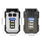 Features: 1.Equipped with strong magnetic field: The bottom strong magnetic field can be freely adsorbed on the surface of iron metal. 2.Eye-catching and eye-catching: It can be used as a warning light/rescue light to quickly locate targets. 3.COB side lights with large floodlighting: Soft and high brightness COB side lights, clear lighting, non irritating, can be used as reading lights 4.Full sense of technology: The dual lamp head design of the highly restored "rocket thruster" illuminates the entire night. 5.Compact body: Exquisite and shiny body, easy to control, can be paired with a keychain. 6.Smart battery display: Always keep track of the battery status to avoid the embarrassment of sudden power outages. Parameters: Product Name: Multifunctional Keychain Lamp Lamp core model: LED+COB Gear setting: 7th gear dimming Product battery: High capacity battery Waterproof grade: Life grade waterproof Control mode: independent dual switch Charging method: Type-c fast charging Battery display: four segment LED light Additional function: Can be used as a cap lamp Product size: 5.7 * 3.7cm Package include: 1x Lamp 1x cable Note: The data in the parameter size information section is manually measured, please refer to the actual measurement!