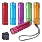This is a new type mini flashlight, COB LED, softer and higher color rendering.As an upgraded version, it has a greater value.New version features- Small but bright (Max 100 Lumen)- Wider lighting of 30 ft- 3×AAA Batteries will give you up to 2.5 hrs bright lighting. Or Last a couple of weeks with normal daily use.- Compact Design – Small and Light weight.(3.4in length,1in wide,1.6 oz)-With lanyard, easy to carry.PACKAGE CONTENTS- 6x Mini LED Flashlight-18x AAA batteriesRETURN POLICY- One year warranty and replace for free New COB LED, softer and higher color rendering,brightness 100 lumen. Light distance is 10 Meter(30ft ) Small and Lightweight- It is compact enough to fit in your pocket,car glove box,toolbox,nightstand or purse,ideal for home use,dog walking,camping and party decoration. Easy To Use And Long-Lasting: Simple on/off push button operation and 3x AAA Batteries up to 2.5 hours of lighting, or normal use for several weeks.(Batteries included) Assorted Colors: Red,Green,Pink,Blue,Orange,Purple. Aluminum Shell. Includes 6 Flashlights and 18 Batteries- Keep one in your car, one in your home, or gift one to a friend or family member. LED number:9 Size:87 X 26mm(L*D) Money device Super bright and high quality Power by:3 x AAA batteries included Light source: Hydraulic leak measurements and biometric testing 8 x 9 LED Flashlight Detect metal cracks Ink curing Material:Aluminum alloy Size:87 X 26mm(L*D) Measurements And Biometric Testing LED Number:9 Hydraulic Leak 8 X 9 LED Flashlight