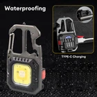 Features: 1. 8 lighting modes: The flashlight has 8 lighting modes to meet your different needs: white light intensity weak; Strong weak yellow light; White light+yellow light, strong weak (press and hold for 2 seconds); Red light, strong flashing 2. The back is equipped with a screwdriver (2.0 slot, 3.0 slot, 2.0 cross, 3.0 cross), and the magnetic suction design should not fall out. It can be used at any time, and the emergency wrench supports various sizes of small nuts 3. When encountering danger and needing to break the window, the emergency window breaking hammer can break the window to escape and be prepared. 4. Super bright COB light: The keychain flashlight has a powerful LED that can provide up to 800 lumens of lighting, while maintaining a portable size and minimalist design; 5. USB charging: This flashlight is powered by a large capacity built-in rechargeable battery and can be used in conjunction with other common portable power devices, such as computers, laptops, car chargers, wall chargers, and mobile power supplies; 6. Hook lock design: It can be hung on the backpack, and the belt buckle is easy to carry. It is also a good bottle opener. It can be used in various scenarios such as camping, dog walking, finding things, and maintenance. 7. Compatible with various standard screw holes at the bottom of tripods, and compatible with all standard tripods, fishing boxes, and fishing chairs on the market. Specifications: Color: Silver Material: Aluminum+ABS Light bulb: white yellow red three color COB high brightness wick Lumen: 500lm white light, 420lm yellow light, 600lm yellow and white light Running time: 3-5 hours Charging time: 1 hour 8 lighting modes: white light intensity weak; Strong weak yellow light; White light+yellow light, strong weak (press and hold for 2 seconds), red light, strong flashing Battery: Built in 500mAh polymer lithium battery Charging: Type-C fast charging interface Package List: (optional) Without bracket: 1x light 1xdata cable