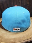 Elevate your headwear collection with the Minor League Baseball Somerset Patriots New Era 59Fifty Fitted Hat. This cap is a quintessential accessory for any baseball enthusiast, featuring a sharp aqua and orange color scheme that stands out in a crowd. Designed for a perfect fit with its sized at 7 1/8, it ensures comfort and style for any occasion, from the game to the streets. Crafted for durability and designed to complement a variety of looks, it's suitable for business events, casual outings, or even a cocktail party. The hat's solid pattern and classic baseball cap style make it a versatile addition to both your sportswear and casual wardrobes. Show off your team spirit while enjoying the high-quality construction that New Era is known for.
