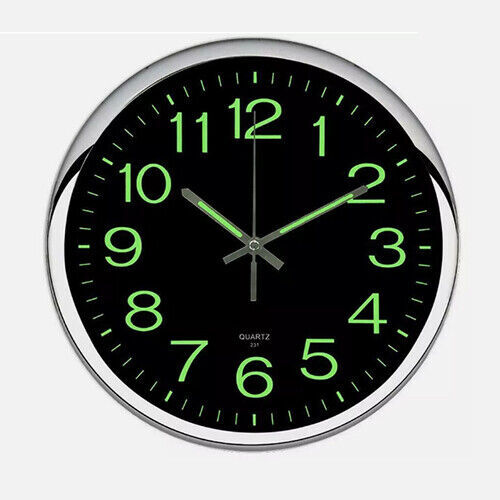Product Description Note: Night Lights Function -- If clock receives enough sunlight at day, it will shine for first few hours at night. 12'' Modern Luminous Large Quartz Wall Clock Non-ticking Fluorescence Indoor US Night Lights Function -- If clock receives enough sunlight at day, it will shine for first few hours at night. Easy to Read – 12 inch basic dial quartz wall clock with luminous Arabic numeral analog display make it easy to see from any corner of your room. Updated quartz movements to ensure accurate time Quite Wall Clock -- Updated quartz movement, super quiet & non-ticking, Quiet sweep second hand, no ticking to ensure a good sleeping or working Classical Design -- wall clock perfect for dining rooms, living rooms, family rooms, bedrooms, study room, kitchen, office and meeting room Power Source -- Battery operated wall clock, Powered by 1 x AA battery (Not Included) Description: The 12” black background wall clock comes with night light function. Make it easy to view in night. The large display clock with precise quartz movements for accurate time; Sweep movement eliminates disturbing ticking sound. the large display wall clock will give you an accurate read on time down to the second so you don't need to second-guess yourself. Perfect decorative clock for school, kitchen, living room, bedroom, family room, meeting room, dining room, office, pool or patio - any place accurate timekeeping is needed. The silent quartz wall clock black base are made of premium plastic that can keep well function and dry in any weather condition, instead of using cardboard as clock background. It's not easy damaged in moisture and wet condition. Specifications Color : Sliver frame, black background Material: Plastic frame, Glass lens, Aluminum clock hands Number: luminous number Dimension: 12 x 12 x 1.57 in Weight: 1.0lbs Style: Modern / Classic Power Supply:1 x AA 1.5V Battery (Not included) Note Try to use ordinary Carbon Zinc battery, not Alkaline battery to avoid the abnormal display. The product might be run out of energy during a long day in the box, so I advise to let the wall clock absorb light energy (sunshine or fluorescent lamp) more than 4 hour before installation when receive the products. The light up function is basically glow in numbers, so they get dimmer as the night wears on, especially if this doesn't get enough sun or other light during the day. Packaging Includes: 1 x 12inch Quartz Wall Clock About Us Payment Shipping Returns Contact Us Based in USA, offering high quality product Pick up orders welcome here and we also offer great discount for wholesales. We only accept PayPal payment . We process and dispatch your purchase within 2 business day after payment clearance. Please contact us if you have special requirements (combination of packaging etc.). We offer free USPS or FEDEX Package as default. If you choose express post, we charge a flat rate and we Express Post, which can be delivered in 1-3 business days, depending on your location. Please contact us first when return, exchange and refund is required. Any direct return of purchased items will not be processed. Change-of-mind return can only be accepted within 7 days after purchase. All other returns can be accepted in 30 days. We will closely examine the condition of the returned items and will not issue any refund/exchange before we make sure the items are in their original neat conditions. Before leaving us neutral or negative feedback, please contact us first. We will do everything we can to give you a satisfying solution. Please don't open case via eBay or PayPal. Please don't open any return request before contact us. We do our best to resolve any issue. Leaving negative feedback and low ratings doesn't get things solved. So please talk with us and we will not let you down. About Us Based in USA, offering high quality product Pick up orders welcome here and we also offer great discount for wholesales. Payment We only accept PayPal payment . Shipping We process and dispatch your purchase within 2 business day after payment clearance. Please contact us if you have special requirements (combination of packaging etc.). We offer free USPS or FEDEX Package as default. If you choose express post, we charge a flat rate and we Express Post, which can be delivered in 1-3 business days, depending on your location. Returns Please contact us first when return, exchange and refund is required. Any direct return of purchased items will not be processed. Change-of-mind return can only be accepted within 7 days after purchase. All other returns can be accepted in 30 days. We will closely examine the condition of the returned items and will not issue any refund/exchange before we make sure the items are in their original neat conditions. Contact Us Before leaving us neutral or negative feedback, please contact us first. We will do everything we can to give you a satisfying solution. Please don't open case via eBay or PayPal. Please don't open any return request before contact us. We do our best to resolve any issue. Leaving negative feedback and low ratings doesn't get things solved. So please talk with us and we will not let you down.
