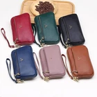 Modern Solid Leather Double Zipper Purse Holder for Women - Multicolor Medium Gift