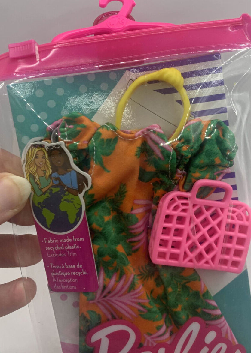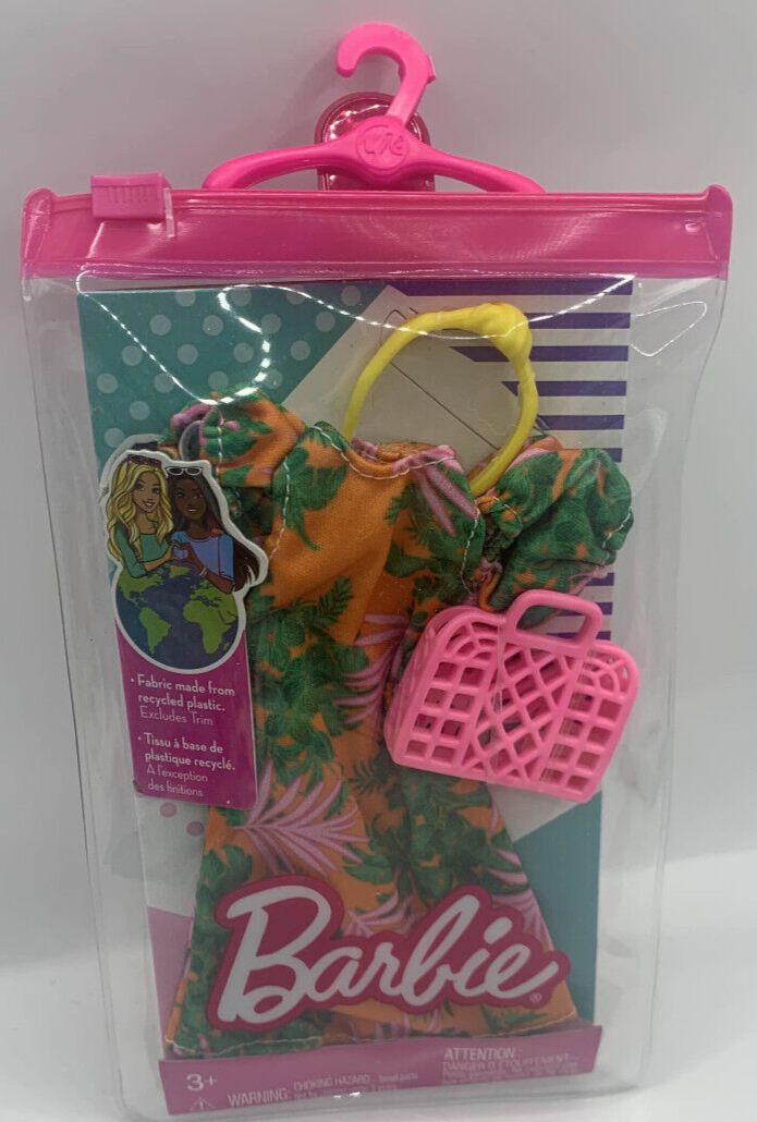New unopened Barbie fashion pack. The fashion pack is a Fashionistas era (2010-2020s) outfit pack. The outfit is a summer dress with plants on it with some accessories. The pack is unopened. Completely sealed and new. Please see all photos. This will be the exact item you receive. Nonsmoking home but we have pets.