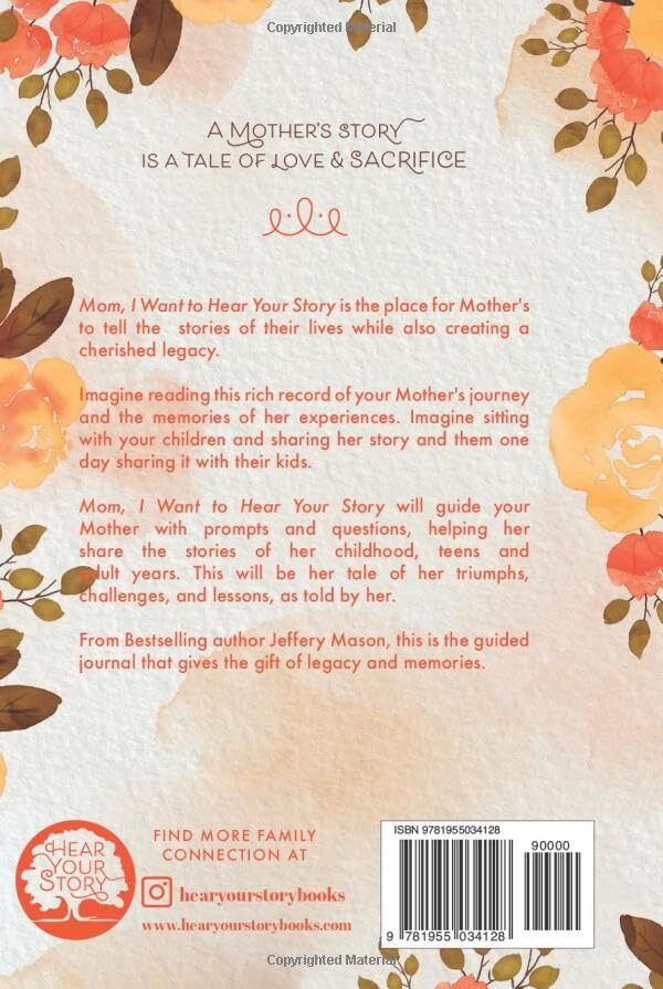 From the Publisher Show Mom Your Love and Appreciation by Giving Her the Gift That Tells Her Life Story Over 250 expertly created questions and prompts that encourage and guide your Mom in reminiscing and recording her special life and memories. Each question has plenty of room for your Mother to write about and share her life stories Covers each stage of your Mom's life: childhood, her teens, adulthood, and motherhood. Extra room and pages are provided so your Mother can customize the book to share her unique and special life story. Includes a family tree to share your family history. Available in a variety of cover versions so you can match this forever gift with your special Mom. Give your Mother the original and best-selling memory-guided journal. Over tens of thousands have been bought for and cherished by Moms all over the world. Featured and Recommended By: Oprah Daily The Pioneer Woman ENews USA Today The Gift Every Mom Will Love! Recording and sharing life moments and memories creates a cherished gift and legacy that can be passed down for generations.