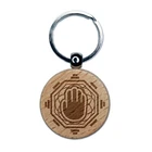 Monk Geometric Palm Engraved Wood Round Keychain Tag Charm