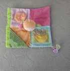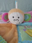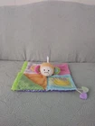 Monkey Baby Activity Lovey Teether Peek-a- Boo Squeaker 2013 Manhattan Toy Co. Excellent pre-owned condition. No rips, stains or holes. From smoke free and pet free home. Item #212410AG. Top of Blanket is Multicolored. Bottom of Blanket is Purple Satin. Monkey's Green Ear Crinkles. Banana Square - Press to Squeak. Yellow Square - Hidden Touch Sensory Flower. Peek Square - Pull Leaf for Crinkle and Open to see Monkey Picture. Pink Square - Touch Sensory Corduroy Material. Purple & Green Corner Leaves - On Elastic. Pull for Motion Sensory. 2225