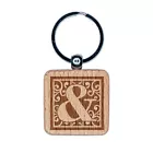Monogram Swirls Ampersand Engraved Wood Square Keychain Tag Charm