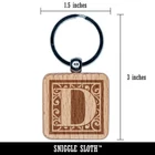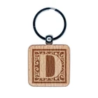 Monogram Swirls Capital Letter D Engraved Wood Square Keychain Tag Charm