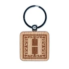 Monogram Swirls Capital Letter H Engraved Wood Square Keychain Tag Charm
