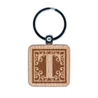 Monogram Swirls Capital Letter T Engraved Wood Square Keychain Tag Charm