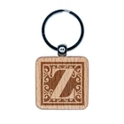 Monogram Swirls Capital Letter Z Engraved Wood Square Keychain Tag Charm