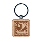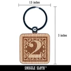 Monogram Swirls Number 2 Two Engraved Wood Square Keychain Tag Charm