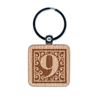 Monogram Swirls Number 9 Nine Engraved Wood Square Keychain Tag Charm