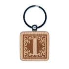 Monograma Remolinos Número 1 Grabado Madera Cuadrado Llavero Etiqueta Dije