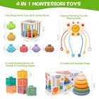Unlock your 's boundless potential with this 4-in-1 Montessori toy set, meticulously crafted to nurture their cognitive and sensory development during the crucial 6-18 month stage. The vibrant stacking rings challenge their problem-solving skills and hand-eye coordination as they learn to build towering structures. Explore shapes, textures, and numbers with the tactile blocks, igniting their curiosity and laying a strong foundation for early math concepts. The pull-string teether soothes tender gums while introducing cause and effect, and the activity cube delights with its engaging sounds and movable parts. This comprehensive set is the perfect companion for your little 's journey of discovery, fostering creativity, focus, and a lifelong love of learning through play. Designed with safety in mind, these toys are crafted from high-quality, durable materials to withstand the rigors of playtime. Give your the gift of an enriching educational experience with this Montessori toy collection. 【Baby Toys 6-12 Months】 4 in 1 montessori toys include 5 stackable rings, 6 soft building blocks, 1 baby toy with string, 1 sensory container for exploration (with 6 sensory balls) .As baby toys 6-12 months, it will help baby activate hand-eye coordination and develop brain and recognition skill 【100% Safe Material】 Montessori toys for babies 6-12 months are made of 100% safe and high quality materials, BPA free, Phthalates Free. toys have passed CPC/ASTM certification tests, which are baby teething toys that parents can trust 【Baby Toy Discovery Basket】 baby toys feature a cube with coloured rubber bands and 6 blocks in different colours, easy to clean and hold. Help babies explore textures and work on fine and gross motor skills. Perfect educational toys for 1 year old girl boy 【Infant Pull String Toys】 The sensory toys 6-12 months can be pulled, chewed and as teether. Help your babies develop finger motor skills and hand-eye coordination. Perfect as baby crib toys, high chair toys and hanging car seat toys and easy to carry for indoor or outdoor, baby must haves 【Baby Blocks & Stacking Rings】 baby blocks & baby stacking toys are good for learning colors, shapes, textures, counting, number, visual development etc. Also can be used as bath toys and matching game, the widely acclaimed learning toys 【Perfect Gift for Babies】 Our montessori baby toys are purposefully designed to enhance sensory perception, hand-eye coordination, cognitive advancement, and early education. It is the best gifts for 6 month old for your children as a birthday gift, or a present for Christmas, Children's Day, Easter and New Year