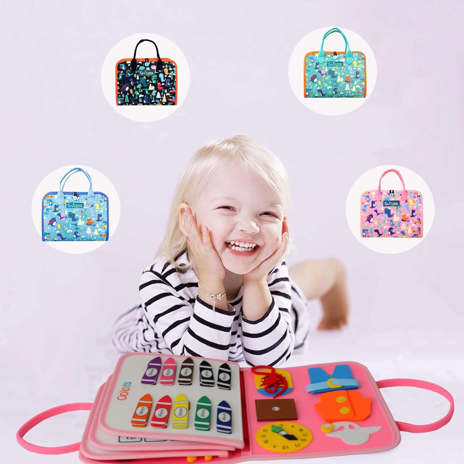 Montessori Busy Board - 8-In-1 Sensory Activity Book with Detachable Pages, Travel-Friendly Learning Toy for Fine Motor Skills & Preschool Education 【8-Page Montessori Learning Systems】 Includes 21+ activities such as zippers, buttons, puzzles, and alphabet matching. Detachable pages support skill progression from basic tasks to advanced challenges. 【Enhanced Educational Content】 Features dinosaur-themed puzzles, shape sorting, and clothing practice. Designed for shared play among siblings or peers. 【Durable & Portable Design】 Crafted with non-toxic soft felt and reinforced stitching. Compact design with a convenient carry handle for travel in backpacks or strollers. 【Skill Development Focus】 Promotes fine motor skills, cognitive thinking, and dressing independence. Provides an engaging, focused alternative for car trips or quiet playtime, encouraging hands-on learning and creativity. 【Vibrant & Interactive Play】 Bright colors and engaging themes encourage parent-child bonding. Perfect for birthdays, holidays, or everyday learning adventures. Product Description Keep your kids busy and enjoy your time! If you are looking for toddler toys for 1-6 year old to let them learn about basic life skills, have nice playtime, keep quiet and you can enjoy your time, TUNJILOOL busy board is a perfect choice. All parts are designed according to the size of children's hands, and it is a great learning & educational toy that works fine motor skills in a baby or toddler. Designed 21 Montessori toddler activities for toddlers to learn ABC and numbers, match shapes and colors, practice self-dressing, play jigsaw puzzles, tell time & dates and develop their fine motor skills! Cute dinosaurs elements design and bright colors attract little one's attention at the first sight and suitable size of all parts fits comfortably in small hands. It can keep kids interested and improve their concentration. A real quiet book for your kids and kids will love it! Learning through Playing: Busy board, aka sensory board, activity board or development board, is a great learning & educational toy that works fine motor skills in a baby or toddler. It's a great sensory activity for babies and learning activity for toddlers through preschool. There are so many benefits of busy boards such as fine motor skill refinement, developing the imagination, encouraging practical life skills, problem solving, hand-eye coordination improvement, sensory learning from colors, shapes, textures numbers etc. If you're searching for a toy that can teach your toddler to learn some basic life skills while simultaneously keeping them busy, the busy board will be a great solution for you. -Fun Toddler Education Toy This busy board contains so many fun toddler activities that you don’t need to worry your little ones will get tired of it in a day.Designed in varying difficult levels that will be challenging enough to keep toddler’s attention and interest, but not too much to make them frustrated. -Security Comes First We specially reinforced the loose parts and give up some choking hazards small metal parts used by others that are easy to fall off; And the felt cotton material is very soft without any irritating smell.no need to worry being hurt by sharp edges like some wooden busy boards. Montessori Busy Board Specification Material: Toxic-free soft fabrics and felt Package Content: 1 x Toddler Busy Board Unfolded Size: 11.2 x 17.7 inch Folded Size: 11.2 x 8.5 inch 21-IN-1 Montessori Busy Board Upgraded 100% Original Design The cute dinosaur patterns will attract the kid’s much attention and interest. Develop kids' enrich imagination, logical thinking, practical ability,hand-eye coordination, focusing mind,colour perception. 21 activities: dinosaur patterns, zippers, shoelaces, buttons, buckles, alphabets, shapes, dinosaur jigsaw puzzles, DIY board, clock & number Good alternative to screen devices while on settings needing quiet. Practice shoe lacing skill Practice zipper skill Practice buttoning skill Practice belts skill Enjoy a parent-child interaction time with your kids with this learning toy. Teach them to buckle, count, zip, snap, count and something else. learning toys gift is made for kids with little hands to handle and grip enough. A decent gift for Birthday, Carnival Prize, Christmas, Halloween, Thanksgiving, Contest prizes. Surprise your kids with our amazing busy board! Warm Tips: 1. As there are some small parts in the busy board, we suggest children under the age of three play this busy board under the supervision of parents. 2. This busy board should be cleaned with a wet cloth, then placed in a ventilated place to dry out (no machine wash). 3.Please tie two knots on both ends of the rope to prevent the small parts from falling off after receiving the toy. 4.We suggest parents to play busy board with kids a few days after receiving it. Kids will be interested in busy board afer they are being proficient with the activities. Item Weight 14.9 ounces Color Pink Product Dimensions 11 x 1 x 8.3 inches Manufacturer recommended age 12 months - 3 years 1.0 inches x 11.0 inches x 8.3 inches. Weight: 14.9 oz Shipping from the USA All of our products are shipped from the USA, ensuring quick delivery to your destination. Payment We offer the following payment methods: PayPal, credit card, bank transfer, and eBay's secure payment system. Free Shipping & Free Returns Shipping within the USA is FREE. Additionally, any return is absolutely free for you. Risk-Free Purchase You have the option to return an item within 30 days without any justification. We cover the return shipping costs! Fast Shipping We ship immediately upon receipt of payment. Generally, the package is delivered within 2-3 days in the USA. If it takes longer, we will contact you. Quality and Costs Made in Europe, USA, China No customs fees or additional charges Total satisfaction guarantee Invoice with declared VAT available upon request in .pdf format Fe