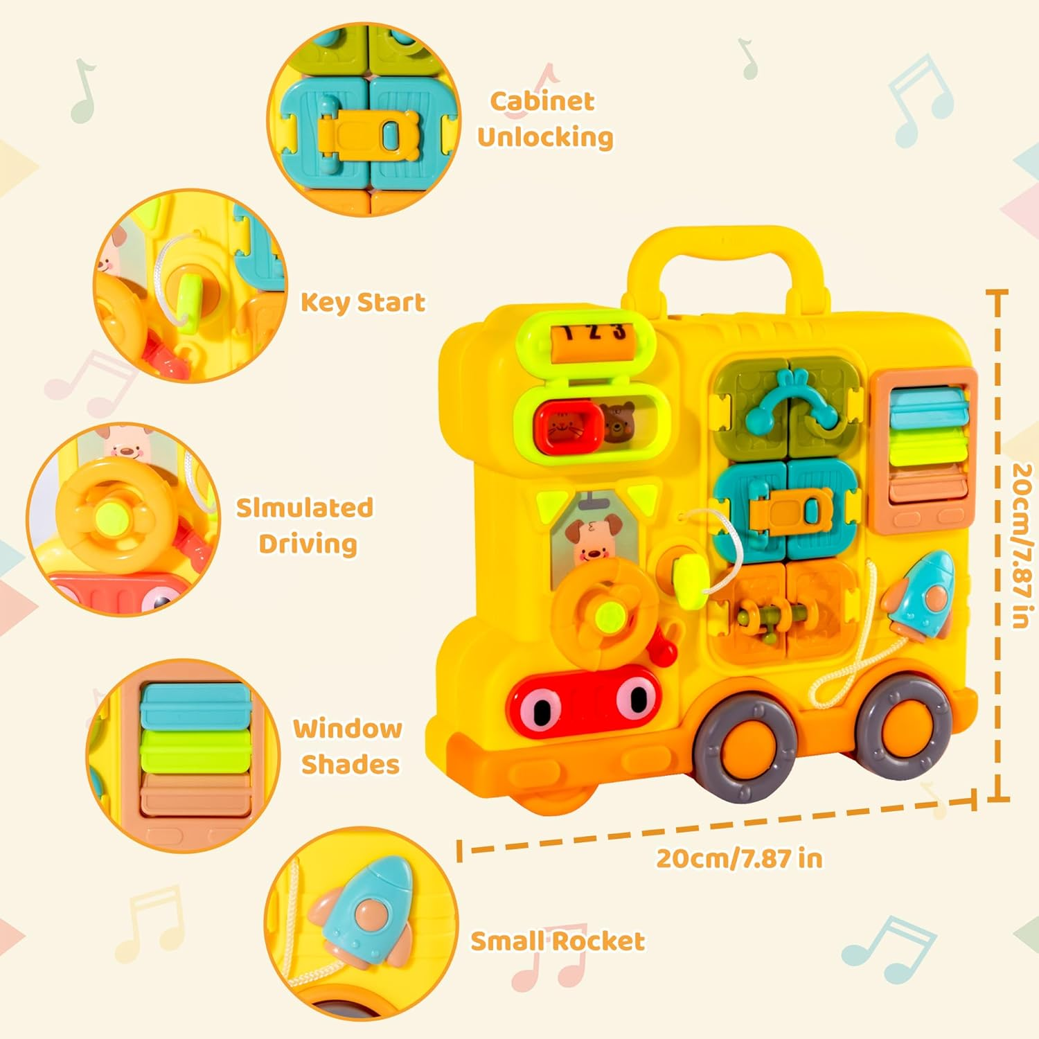 Store New Arrivals Add to Favorite View Feedback Contact Montessori Busy Board for 1-2 Year Old Girl Gift, Musical Montessori Toys for 1 Year Old, Early Educational Toy for Toddler 1-3, Christmas, Birthday Gift for 1+ Year Old Baby Girl Description Item Weight 1.12 pounds Color Yellow Product Dimensions 7.48 x 2.36 x 6.88 inches Manufacturer recommended age 36 months - 4 years 【Busy Board Montessori Toys for 1 Year Old】Our montessori toy busy board for toddlers focuses on appliance use and life skills. Including a variety of interactive activities such as a key start, pretend to make a telephone, cabinet unlocking, steering wheel, tooth brushing practice, and more. This early educational busy board toy is suitable for baby boys and girls aged 1-2 years old. It can keep babies focused and entertained for hours while developing their imagination. 【Montessori Busy Board with Lights】When your baby turns on the power switch, she will be happy to find that it lights up the lights. Baby can insert the key to start it, small rocket, turn the steering wheel, adding to the fun. This busy board montessori toys keeps toddlers 1-3 year old happily learning and playing anywhere. (Product color is random) 【Colorful Cartoon Design】This busy board toys for toddler aged 1-3 features a cute cartoon design with vibrant colors and music, effects attract the baby attention. This montessori busy board encourages fine motor skill development and hand-eye coordination, sparks creativity, and introduces color recognition through hands-on play, making it an ideal choice toys for 1 year old girl. 【Essential Travel Toys】This busy board for toddlers 1-3 features a variety of interactive experiences such as fridge, toaster, tissue pull, closestool, squeezing toothpaste, bow, tie shoelaces, clock adjustment. With its lightweight design and convenient handle. 2 adjustable volume level for quiet play. Perfect for baby aged 12-18 months and up during long car rides, flights or outdoor. The ideal choice for travel. (3 AA batteries are required, Not Included) 【Perfect Gift for 1-3 Year Old Baby Girl Boy】Our educational toys are made of durable ABS plastic, featuring smooth edges, it's certified to meet U.S. toy safety standards, ensuring safety for baby. This montessori busy board toy for 1-2 year old girl boy is an ideal gift for birthday, Christmas, Easter, Thanksgiving, Halloween and other special occasions. Product description ABOUT US We offer the best prices on a wide range of high-quality everyday products. Our store includes tools, home and kitchen essentials, kids’ toys, crafts and DIY supplies, party decorations, outdoor and household accessories, pet items, beauty and personal care products, and much more. SHIPPING We are always working hard to ensure your package arrives as soon as possible. Please understand that some factors like weather, high postal traffic, and the performance of shipping companies are outside of our control. We ship within 2 business days of payment, usually sooner. RETURNS We offer a 30-Day Return Policy on items which you are not completely satisfied with. You have the option for a full-refund or an exchange of the item. PAYMENT We accept PayPal. CONTACT US This page content is yet to come Please ad us to your favorite seller and visit again later Thank You CUSTOMER SATISFACTION We try our very best to make sure every customer is completely satisfied. If there's a problem, message us! We're happy to help. WE ACCEPT