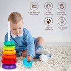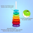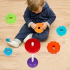 EDUCATIONAL BABY TOY: It is an upgraded version of the stacking ring baby toy. Incorporating fruit and animal themed shapes, it can be flexibly stacked in any way, with dual different base designs, swinging or sturdy. Baby can sort the discs by color, shape and size. PREMIUM SAFETY MATERIAL: Suitable for children over 1 year old, made of sturdy and durable ABS plastic, BPA free.Passed rigorous laboratory safety tests to ensure that every detail is safe for your baby. MONTESSORI BABY TOYS: Encourages babies to learn color and shape recognition, cause and effect relationships, classification skills, fine motor skills, hand-eye coordination, dexterity, and triggers their desire to explore. SENSORY EXPLORATION TOYS: Textured discs and bright colors work well to attract children's attention and stimulate their curiosity, visually and tactilely, helping to trigger sensory exploration. It is also a sensory toy for children with autism. BEST GIFT FOR BABY: Loved by thousands of families. It is perfect for toddler gifts for both boys and girls, ideal gift choice for occasions such as birthdays, Easter, Christmas, Children's Day and New Year's Day. Product Description Colorful and Diverse Rings Covering themes such as fruits & animals & flowers, each ring is double-colored and more attractive. Dual Base Design One side is stabilized to stay upright, the other side is wobbly for added fun. More than a toy-sorting, stacking, spinning-it's also a mark of growing up!