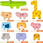 ANIMAL BLOCKS SET (10 Pieces) -- This stacking block set includes 10 chunky blocks, 10 double-sided challenge cards with three different levels of real challenge. WITTY AND CUTE -- This set of blocks presents a different kind of witty cuteness. There are 10 different shaped blocks with simple lines on the blocks to outline different animals: giraffe, sheep, puppy, cow, crocodile, hippo, elephant, mouse and rhino. START BRAIN GAMES -- Stack, pattern and multicolor shapes, but don’t be fooled by these endlessly enjoyable blocks mean fine motor skills and brain-boosting business. Whether it's a horizontal challenge or free stacking, it's all in the children's play! CHUNKY AND SAFE -- The chunky design makes it easier for young children to grasp. It is made of high quality wood and coated with an environmentally friendly water-based paint that is safe for your child. GIVE THE GIFT OF LEARNING -- Whether you’re shopping for holidays, birthdays, Uyogos , or just because. Bambilo toys is ideal gift for Halloween, Christmas, Easter or even for Homeschool. Product Description