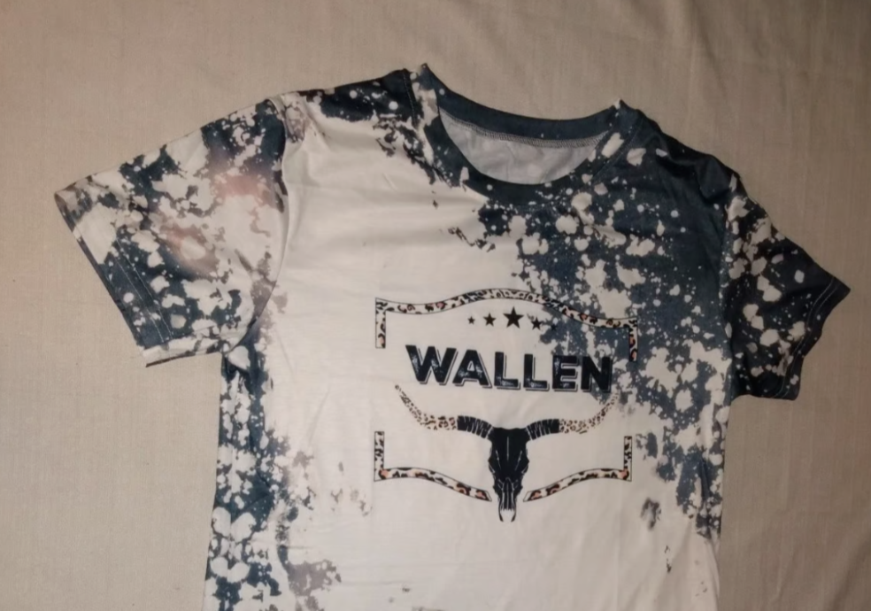 This Morgan Wallen women's T-shirt is perfect for country western lovers. The cowhide tie-dye design adds a unique touch to the classic T-shirt style. The shirt is made for women and comes in size L. The theme of the T-shirt is western, making it an ideal choice for those who love the country style. Whether you're going out for a casual outing or a western-themed party, this T-shirt will surely make a statement.