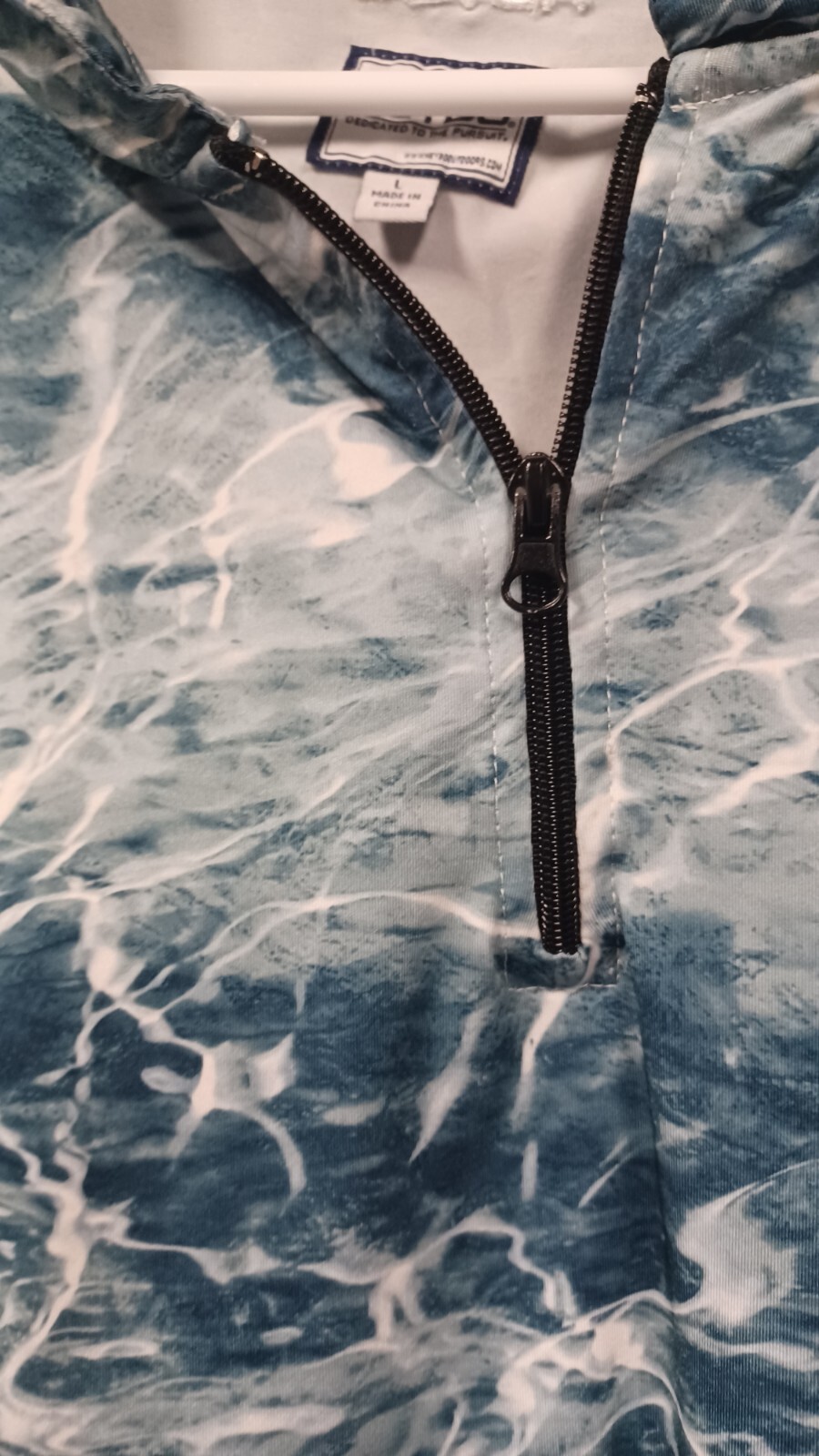 Long sleeve quarter zip shirt in good condition with minor wear. The jersey part has a couple of pulls on the back.